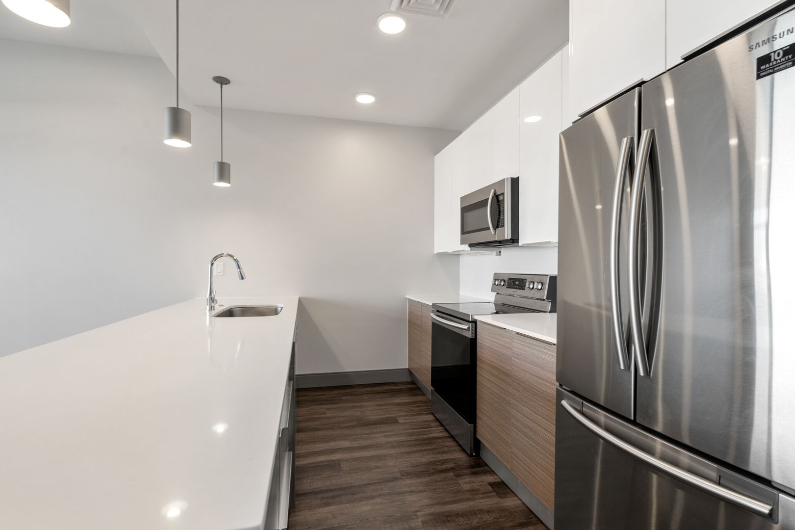 Built in 2019, this large 2 bed 2 bath unit features modern quartz countertops with a breakfast bar, stainless steel appliances, LED recess lighting, custom light fixtures, energy-efficient central air system, and two well-sized bedrooms with bountiful closet space. Enjoy your own private balcony! The fully equipped common roof deck features a TV, fireplace, grilling area, full kitchen, and inside lounge area with a game room. Plus, you'll have access to a private garage parking for rent. Welcome home to 400 Mystic!