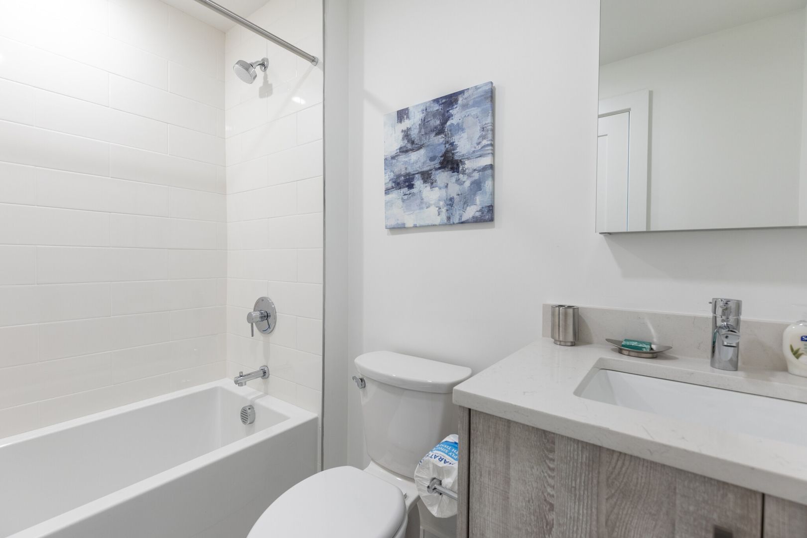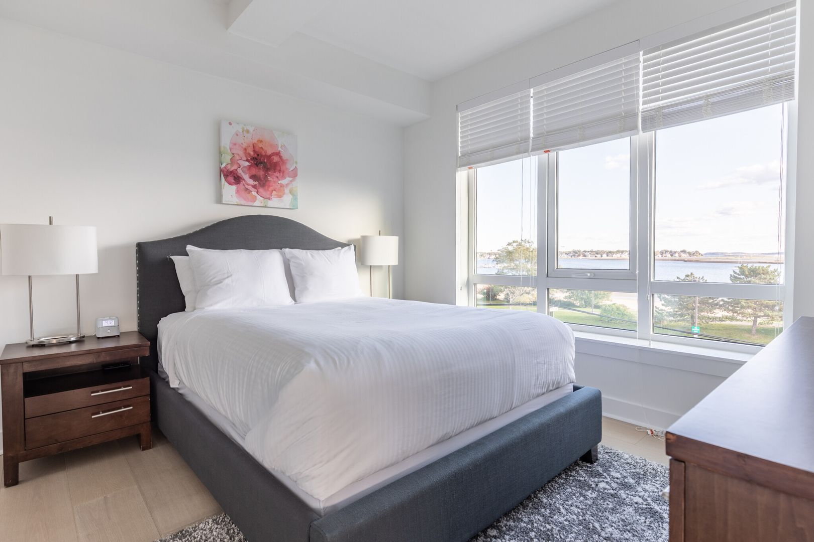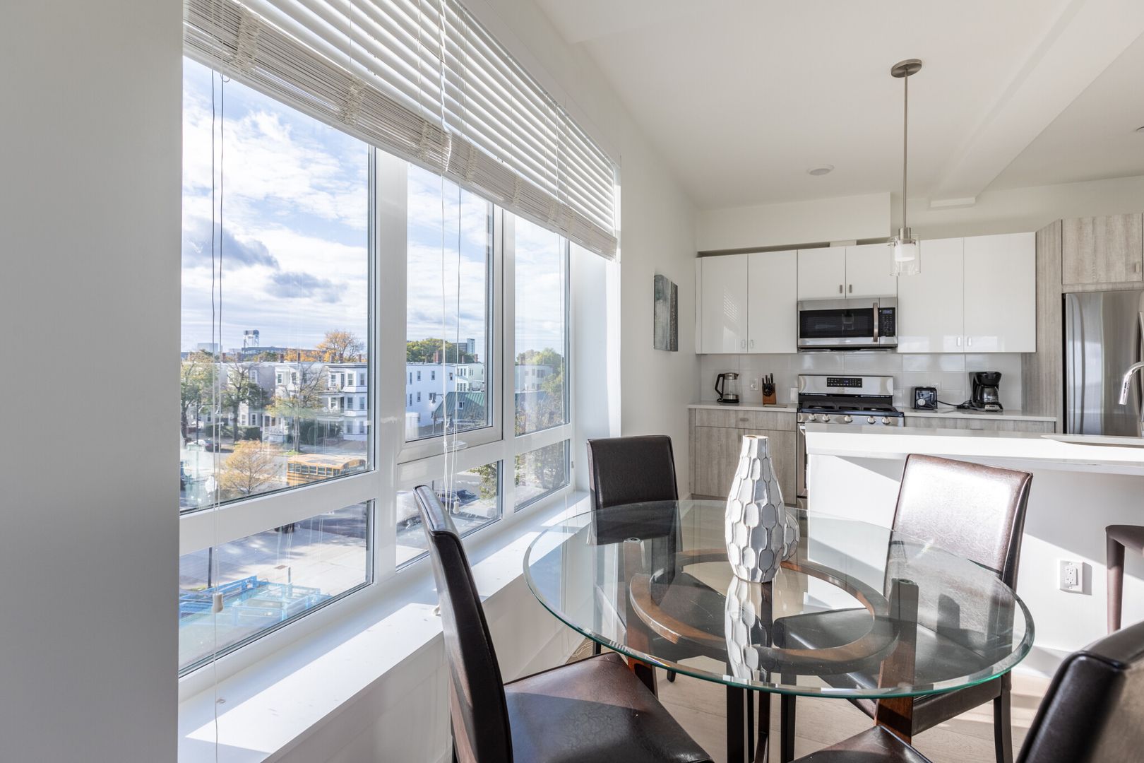 This stylish and spacious corner unit one-bedroom apartment is flooded with natural light. The open-concept living area features stainless steel appliances, modern finishes, and custom-made windows, complemented by an off-white quartz island in the kitchen. The large bedroom and ample closets enhance its livability. Additional amenities include two common roof decks, in-unit laundry, panoramic water and city views, garage parking for rent, and easy city access. The Bennington is a professionally managed elevator building offering the benefits of new construction. Enjoy city and beach living with a focus on community, comfort, and space.