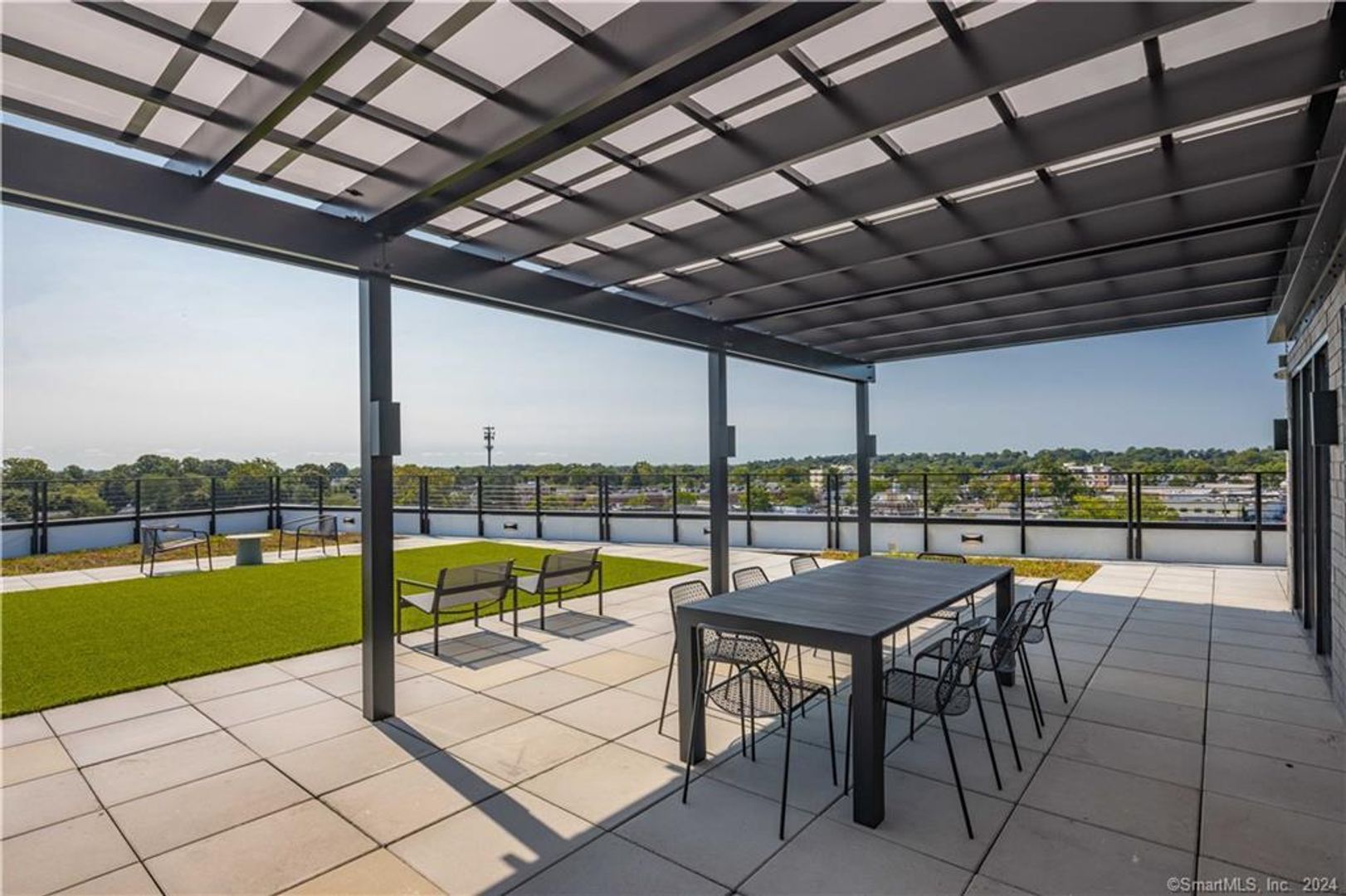 Residents enjoy premium amenities, including dedicated indoor parking and an oversized rooftop deck with lounge seating, perfect for unwinding or entertaining while taking in sweeping views of downtown Fairfield.