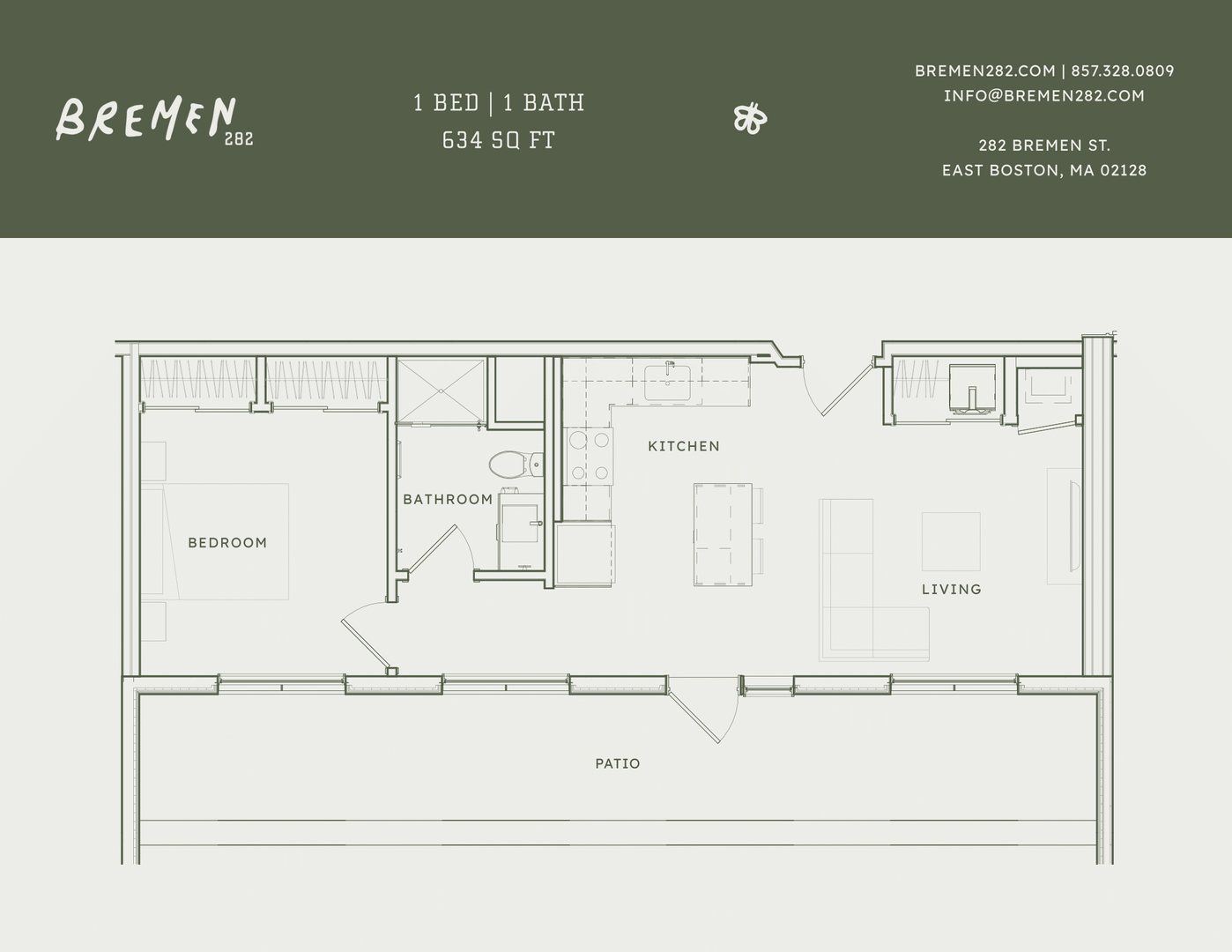 Bremen 282 offers a harmonious blend of thoughtful design, community integration, and contemporary comfort. With easy access to the Blue Line, bus routes, and Logan Airport, Bremen 282 simplifies your on-the-go lifestyle. Our apartments are nestled near beautiful parks like Bremen Street Park and LoPresti Park, and local favorites Lewis Pier and Orient Heights Beach. Immerse yourself in East Boston's unique urban fabric and experience the local flavor at Santarpio’s Pizza, Taqueria Jalisco, or Angela’s Cafe!